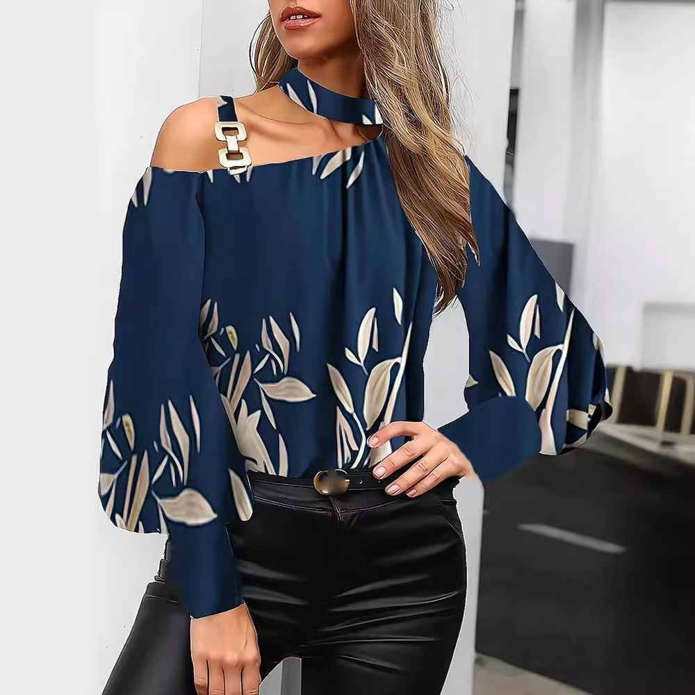 | nameOriginal | Cross-border foreign trade Amazon AliExpress European and American 2023 autumn single strap metal buckle off-the-shoulder printed long sleeve shirt |