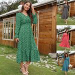 | nameOriginal | Cross-border foreign trade Amazon independent station 2023 European and American autumn polka dot printing elegant V-neck holiday style dress |