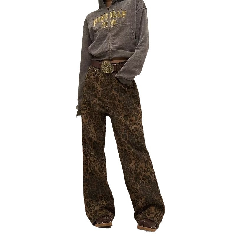 | nameOriginal | Cross-border Foreign Trade American Retro High Street 2024 Design Sense Niche Leopard Print Loose Wide-leg Straight Jeans Women's Summer |