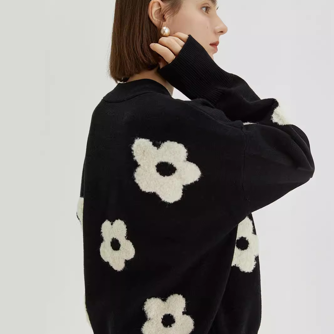 | nameOriginal | Cross-border foreign trade autumn new V-neck three-dimensional intarsia lazy slim flower sweater cardigan sweater coat women |