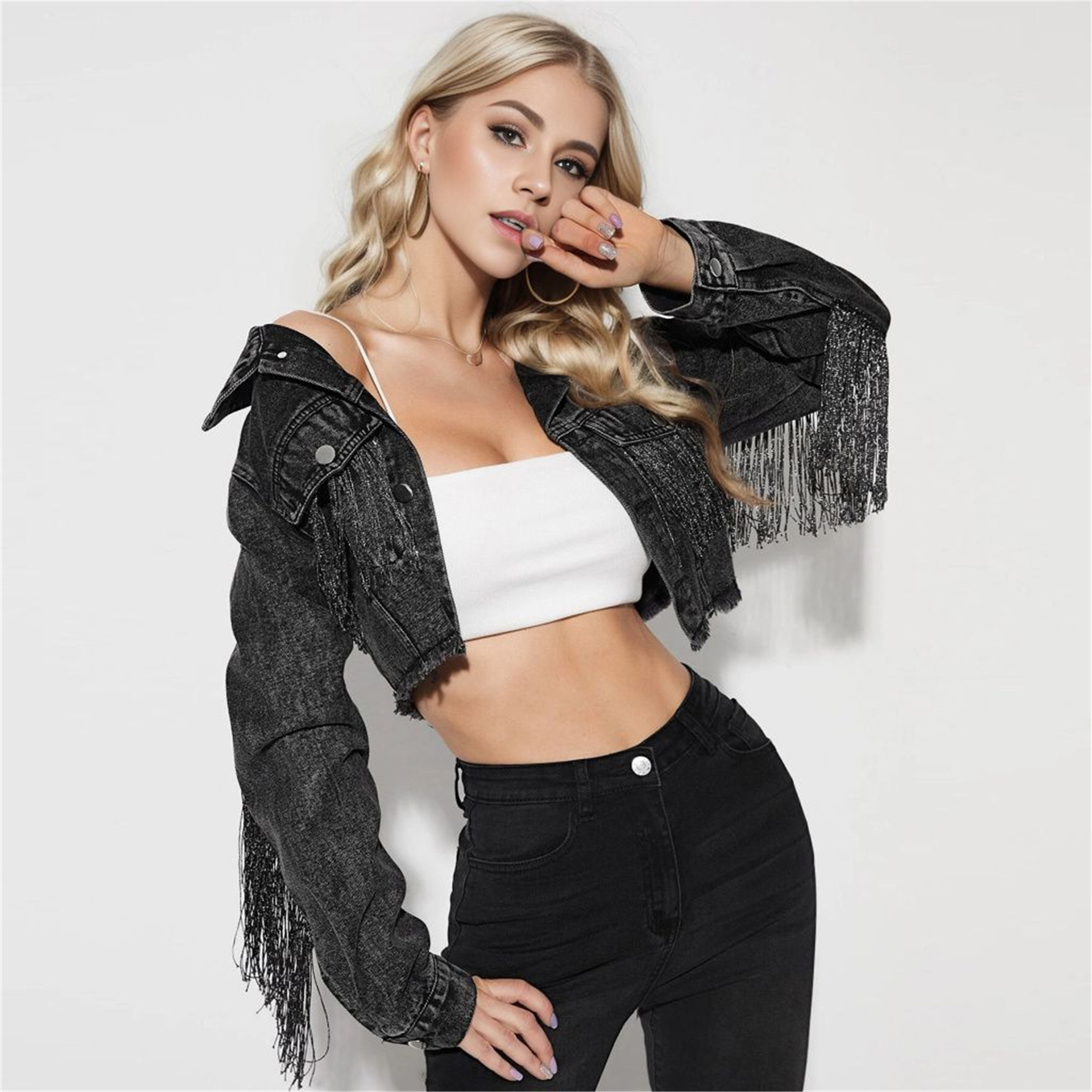 | nameOriginal | Cross-border foreign trade Denim coat women's fashion tassel stitching old Denim jacket women manufacturers cross-border a generation of hair |