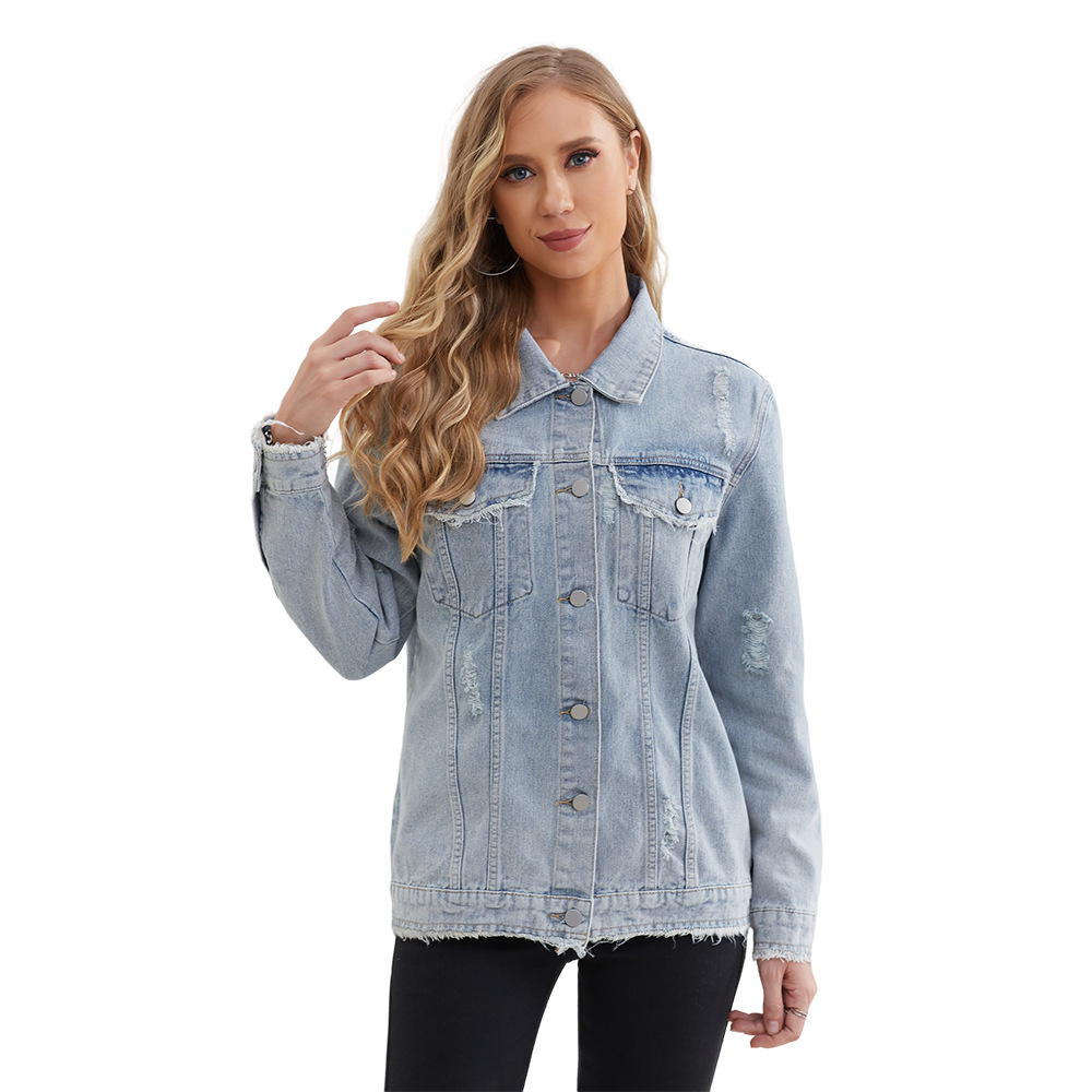 Cross-border Foreign Trade E-commerce Women's Denim Coat Loose plus size Mid-length Fur Edge Fashion Denim Top