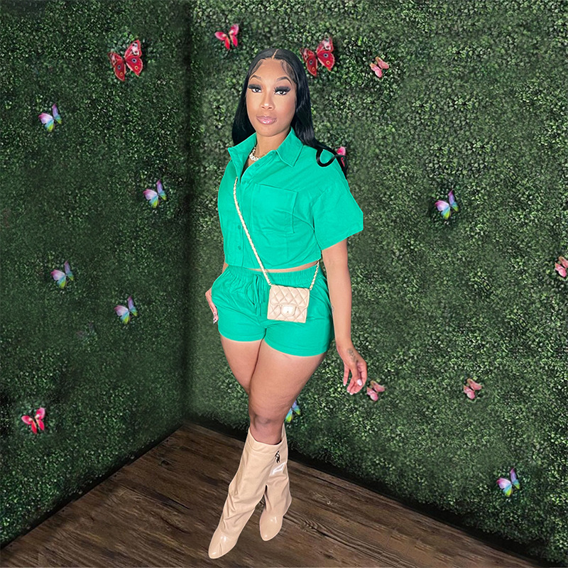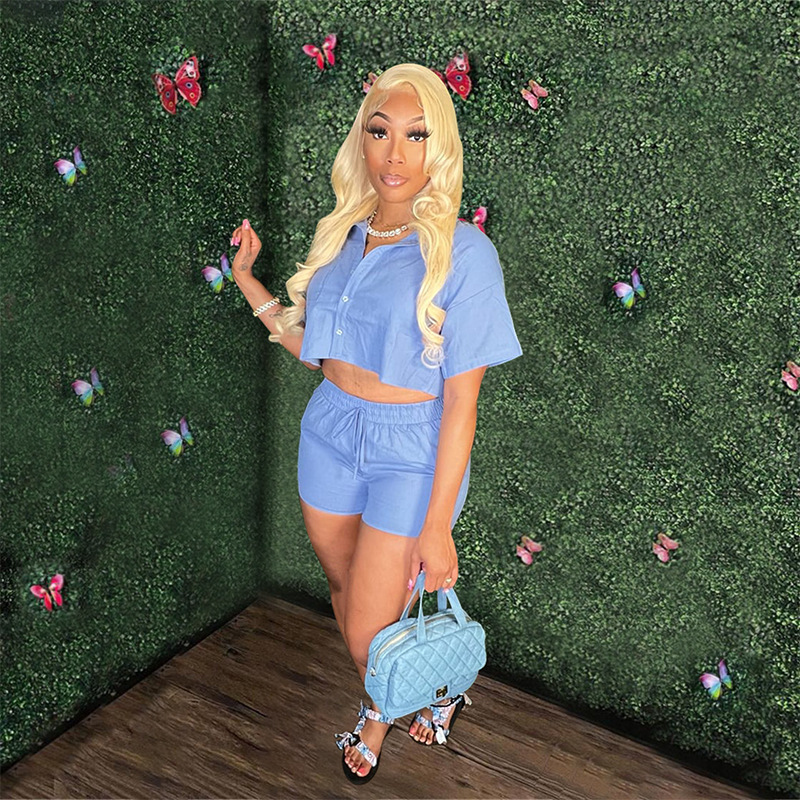 | nameOriginal | Cross-border foreign trade European and American foreign trade women's short-sleeved shirt set rubber pocket shorts two-piece summer new product |
