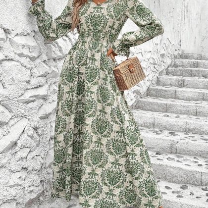 | nameOriginal | Cross-border foreign trade European and American women's clothing 2024 Amazon autumn fashion printed dress V-neck long sleeve dress |