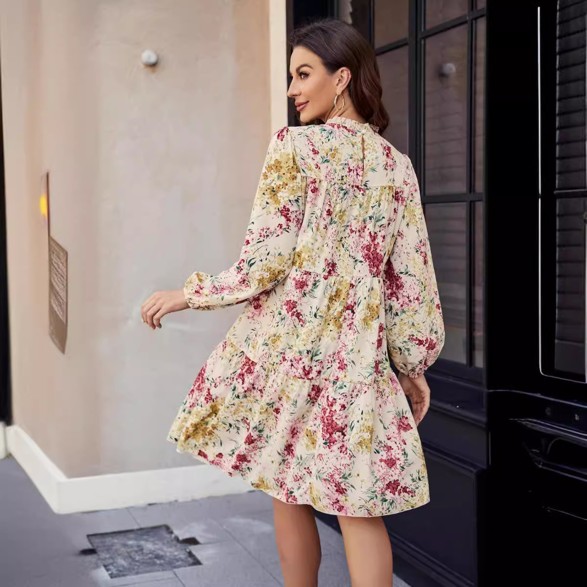 | nameOriginal | Cross-border foreign trade European and American women's clothing 2024 spring Amazon loose waist cake skirt versatile printed long sleeve dress |