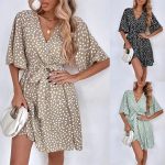 | nameOriginal | Cross-border foreign trade European and American women's clothing AliExpress Amazon 2024 Summer V-neck short sleeve tight waist ruffled dress |