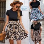 | nameOriginal | Cross-border foreign trade European and American women's clothing Amazon 2023 Summer leopard print stitching short skirt lace-up waist dress |