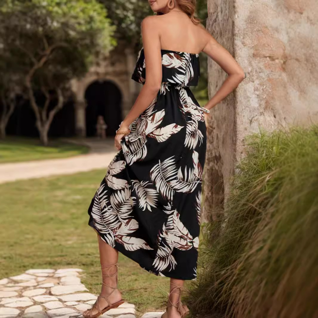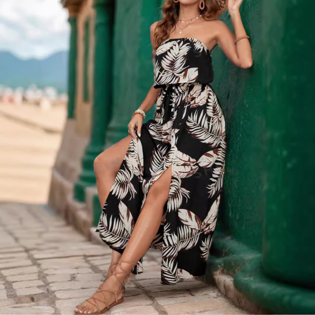 | nameOriginal | Cross-border foreign trade European and American women's clothing Amazon 2024 autumn and winter fashion sexy shoulder ruffled split dress |