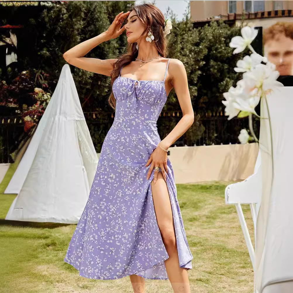 | nameOriginal | Cross-border foreign trade European and American women's clothing Amazon AliExpress 2023 Summer sexy strap printed split dress |