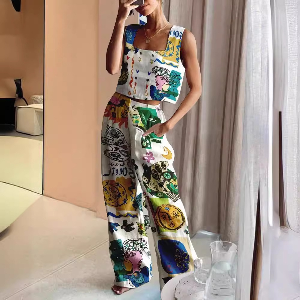 | nameOriginal | Cross-border foreign trade independent station 2023 new European and American printed wide leg pants + vest casual fashion two-piece suit for women |