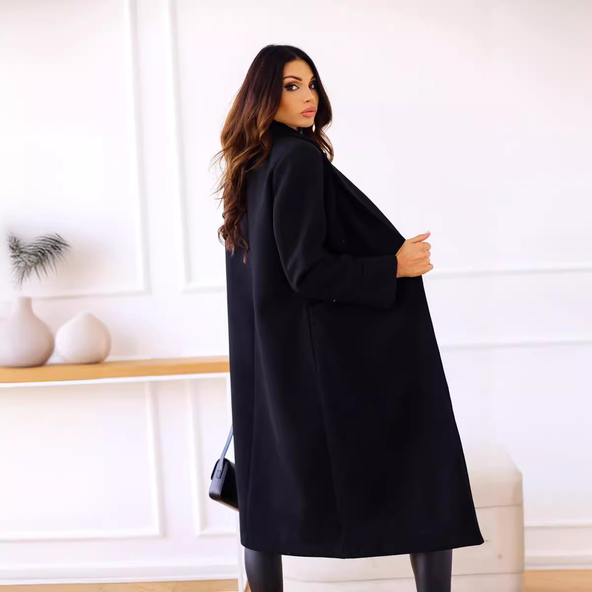 Cross-border Foreign Trade Independent Station Amazon 2023 Autumn and Winter Simple Double-breasted Long-sleeved Lapel Button Woolen Coat for Women