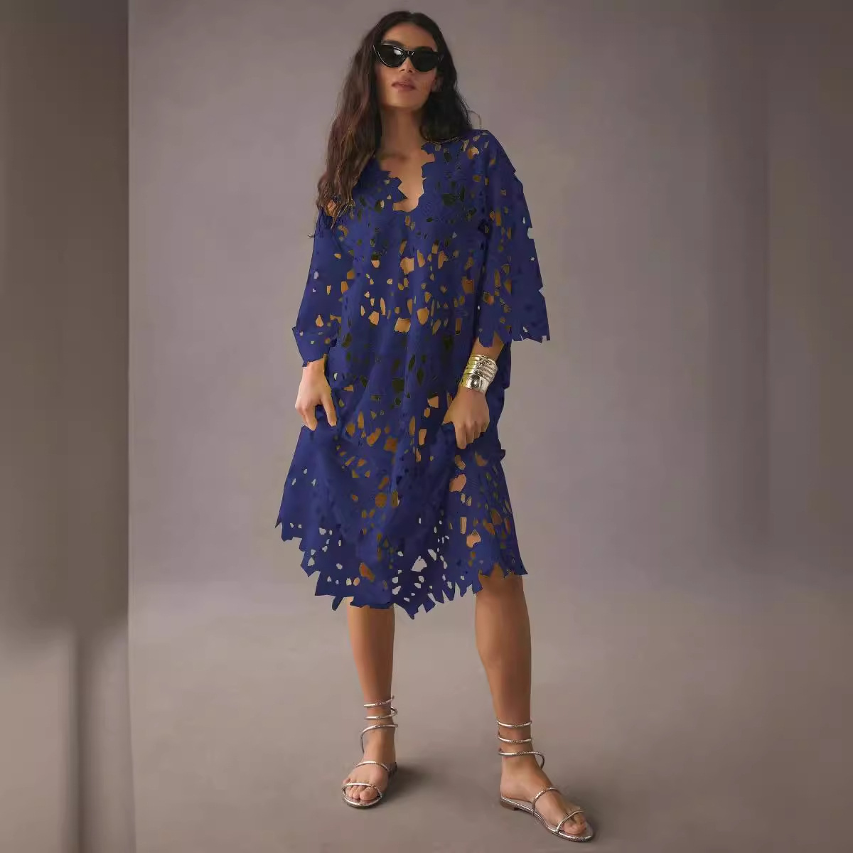 Cross-border foreign trade independent station Amazon 2023 new European and American leisure loose beach holiday blouse lace shirt