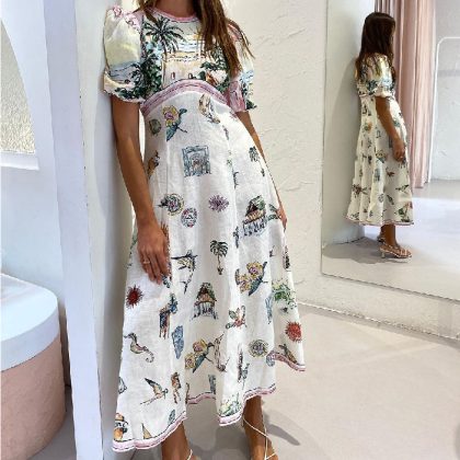 | nameOriginal | Cross-border foreign trade independent station European and American 2024 new summer casual printed cotton and linen round neck short sleeve dress women |