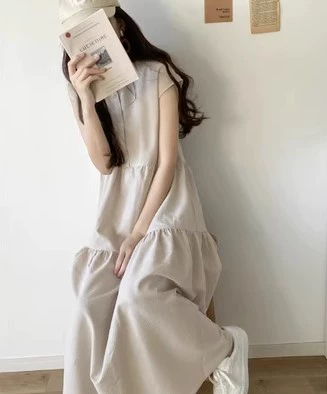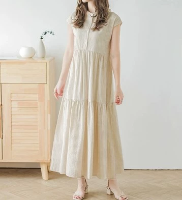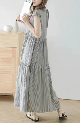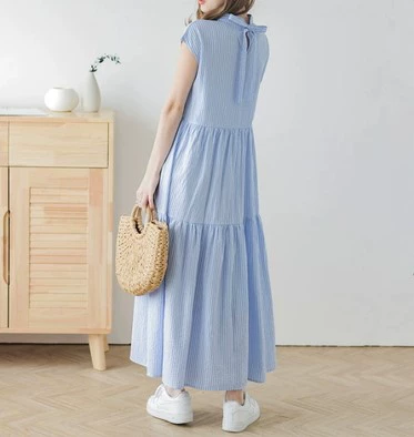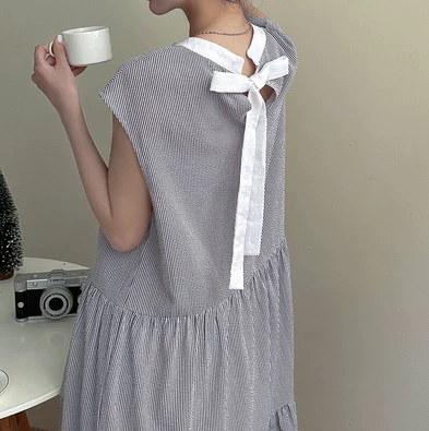 Cross-border foreign trade Japanese and Korean style summer sweet back-neck lace-up sleeveless striped ruffle cake skirt dress doll skirt
