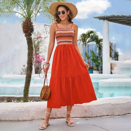 | nameOriginal | Cross-border Foreign Trade Stretch Long Skirt Suspender Skirt Elastic Waist Pleated Stitching Sleeveless dress Spring and Summer Women's Design Sense |