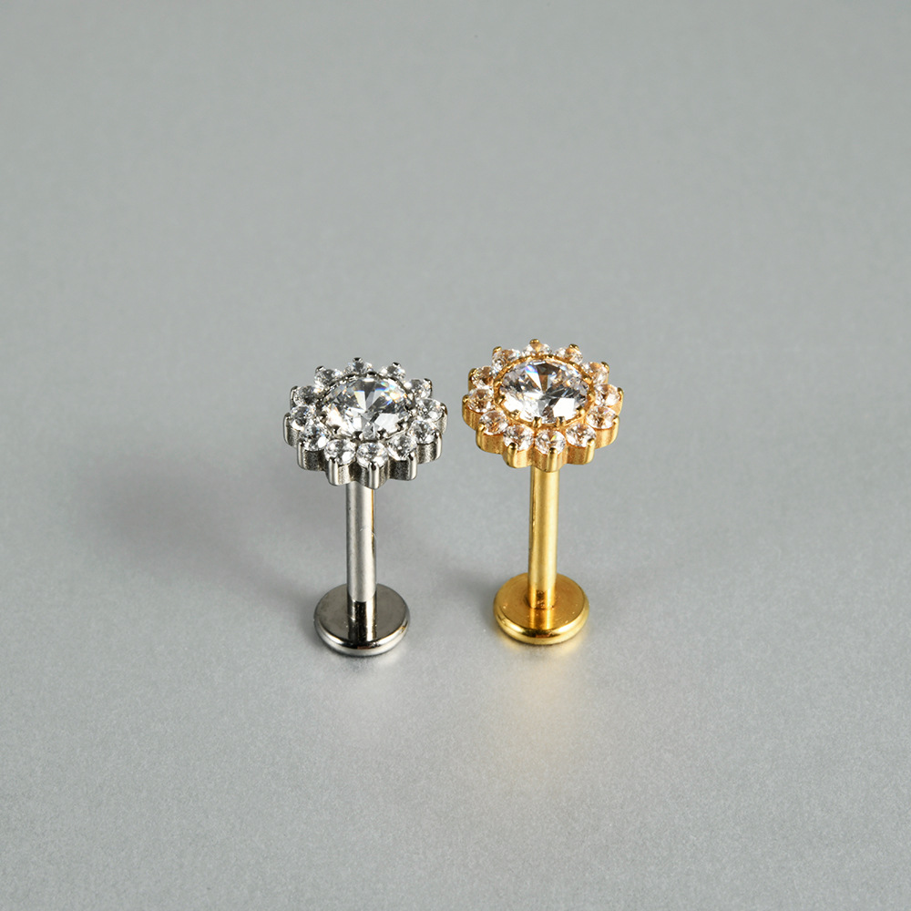 | nameOriginal | Cross-border G23 titanium alloy 3A flash white zircon internal thread lip nail flower ear nail ear nail piercing jewelry |