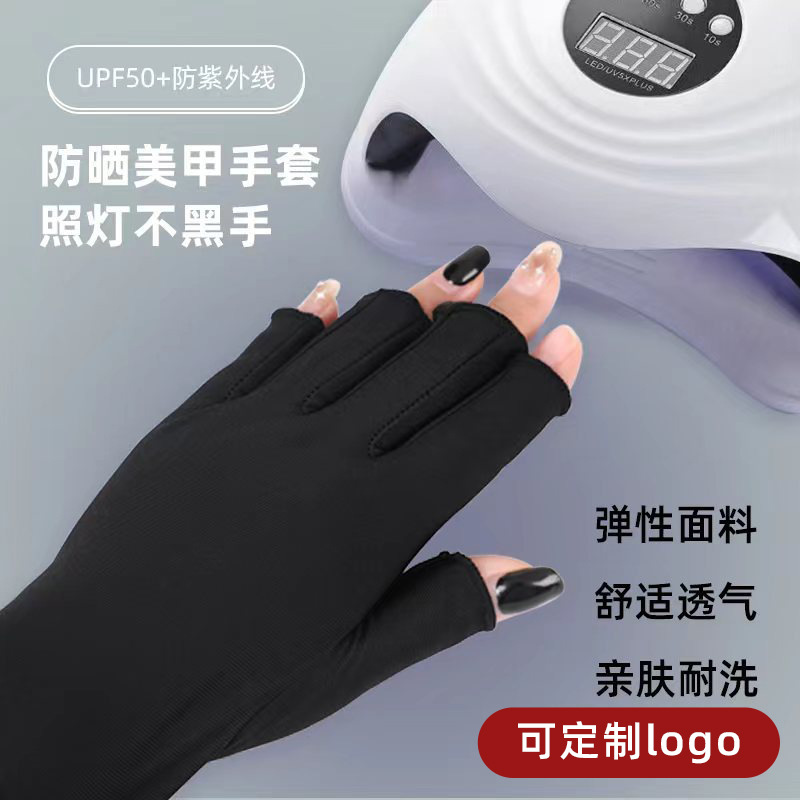 Cross-border high elastic sun protection nail gloves women's summer thin UV protection gloves half finger UV protection Black Nail