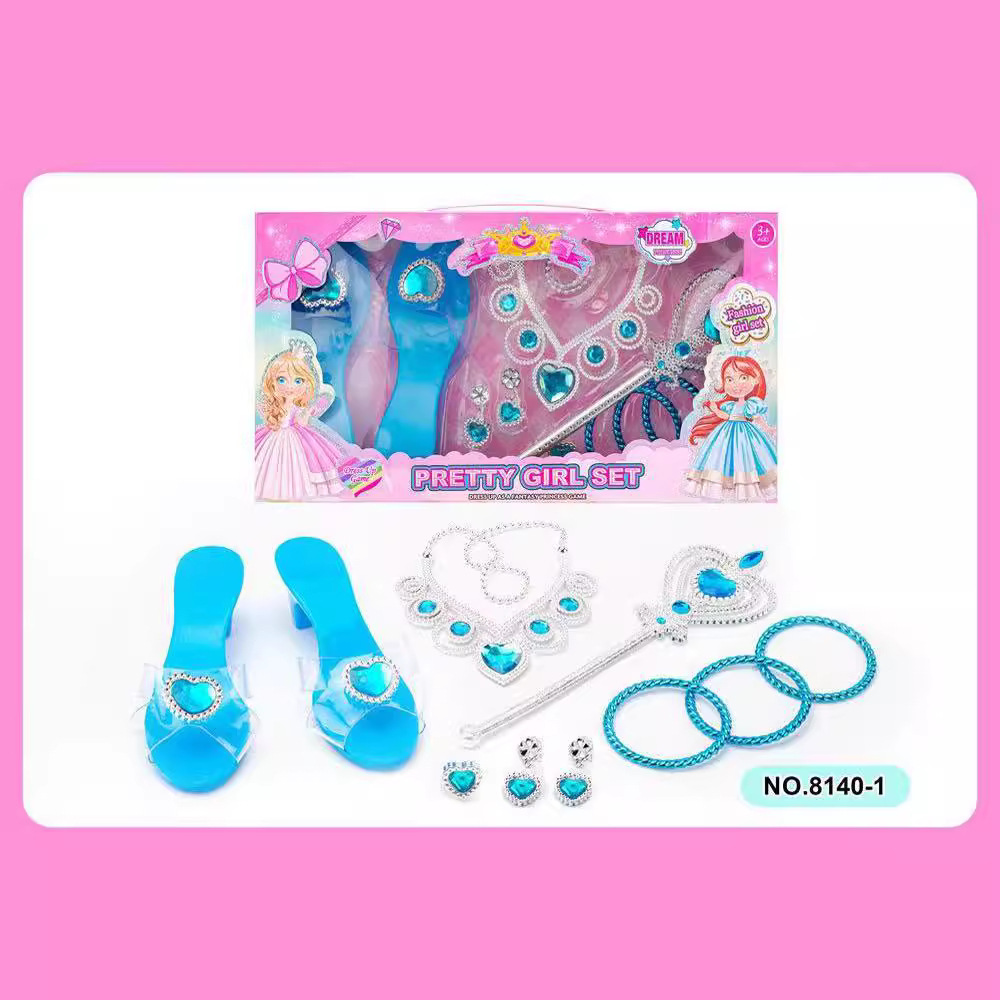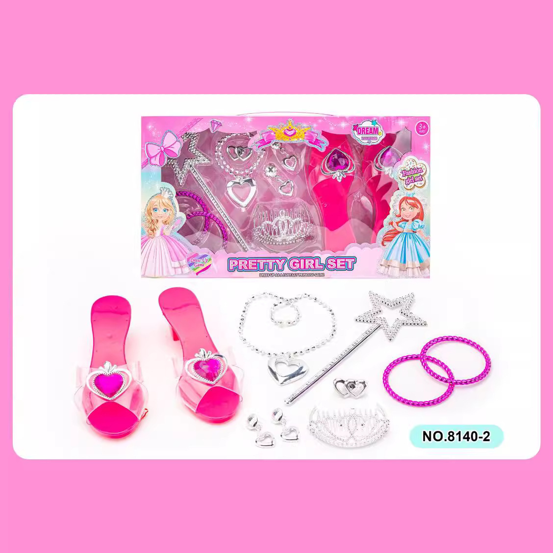 | nameOriginal | Cross-border Hot Children's Jewelry Toys Play Home Crystal High Heels Necklace Bracelet Backpack suit Girls Toys |