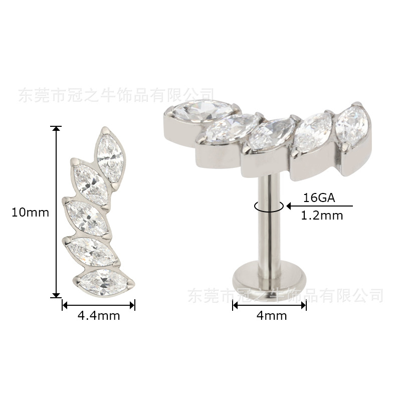 | nameOriginal | Cross-border hot sale ASTM F-136 titanium body piercing jewelry European and American multi-color zircon tongue nail lip nail ear bone nail |