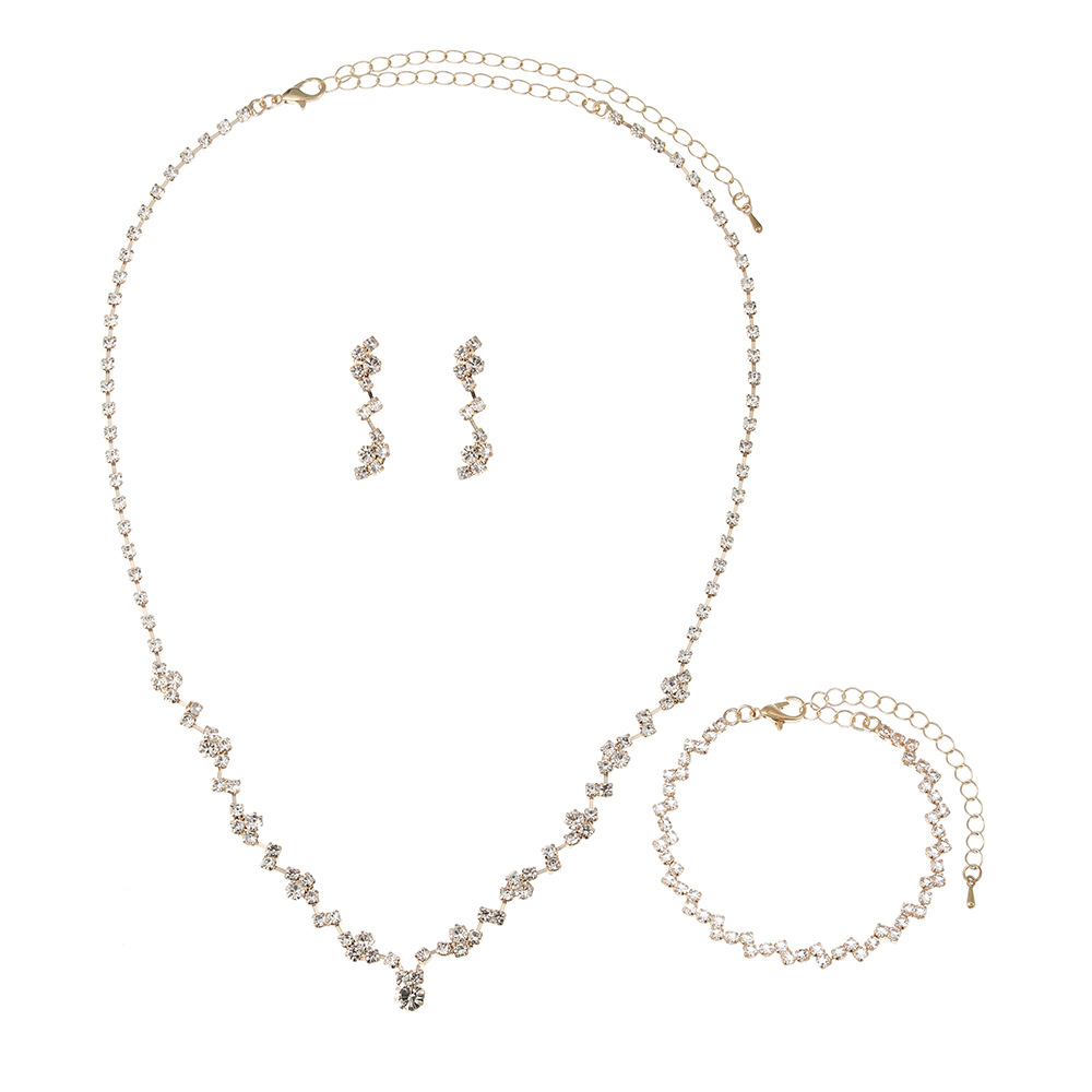 | nameOriginal | Cross-border hot sale fashion elegant rhinestone necklace stud earrings bracelet suit bridal jewelry female wedding accessories |