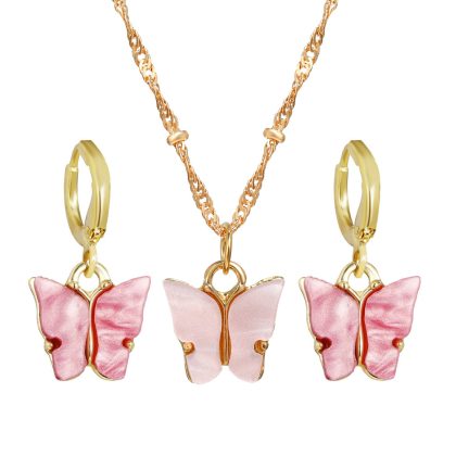 | nameOriginal | Cross-border hot-selling colorful acrylic butterfly necklace suit retro simple jewelry suit stud earrings necklace suit |