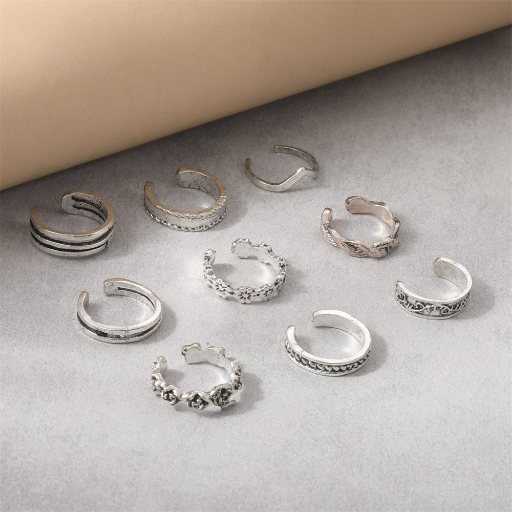 Cross-border hot-selling combination ring Europe and the United States retro old flower opening 9 suit ring jewelry factory direct sales