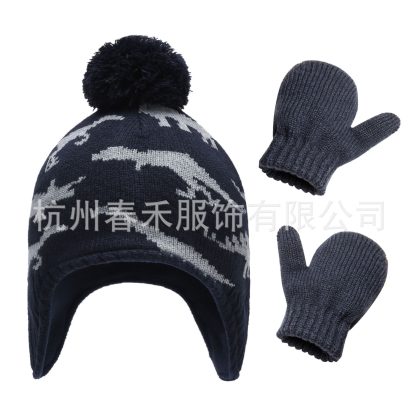 | nameOriginal | Cross-border hot spot 9 color 3 size autumn and winter cartoon hat bag set young children's knitted hat gloves 3 kit |