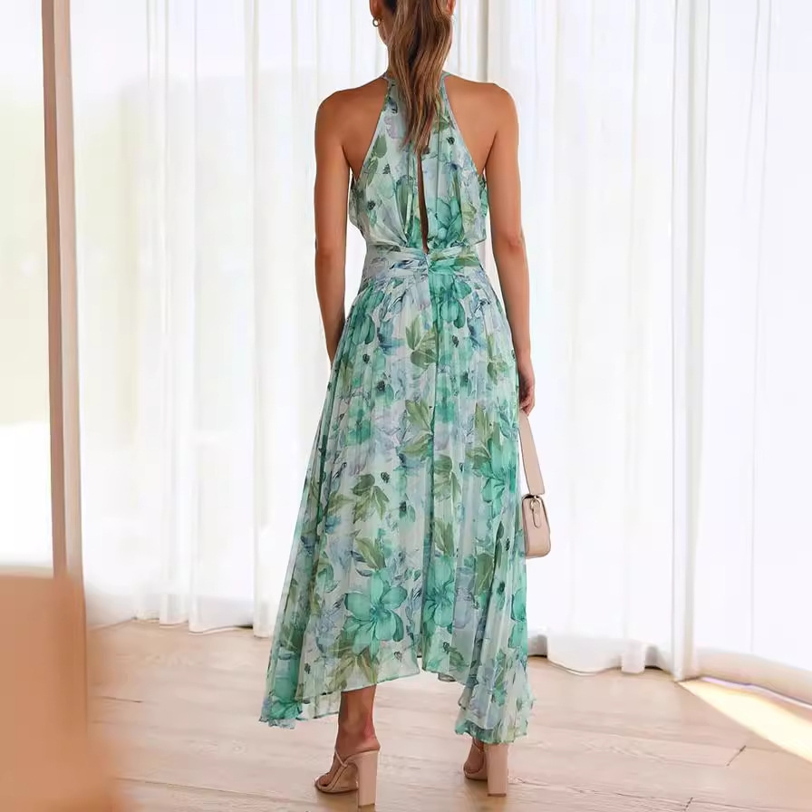 | nameOriginal | Cross-border Independent Station Amazon 2023 Summer Women's Hanging Neck Sleeveless V-Neck Printed Large Swing Dress |