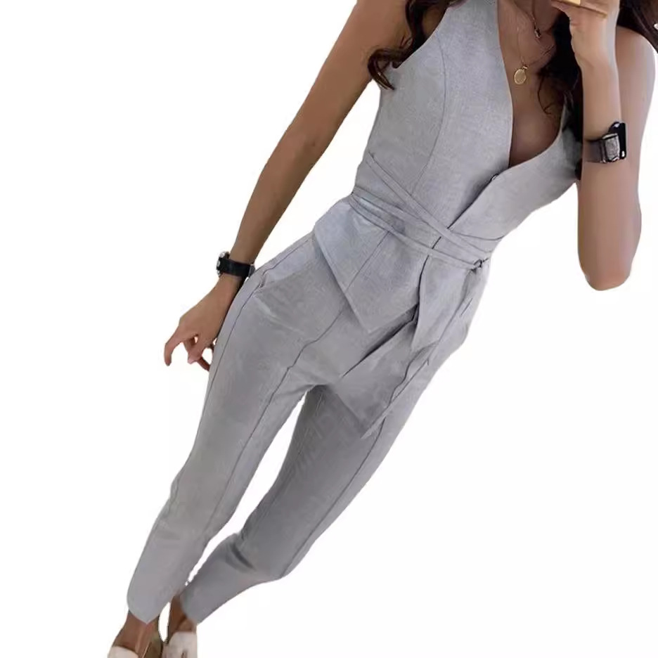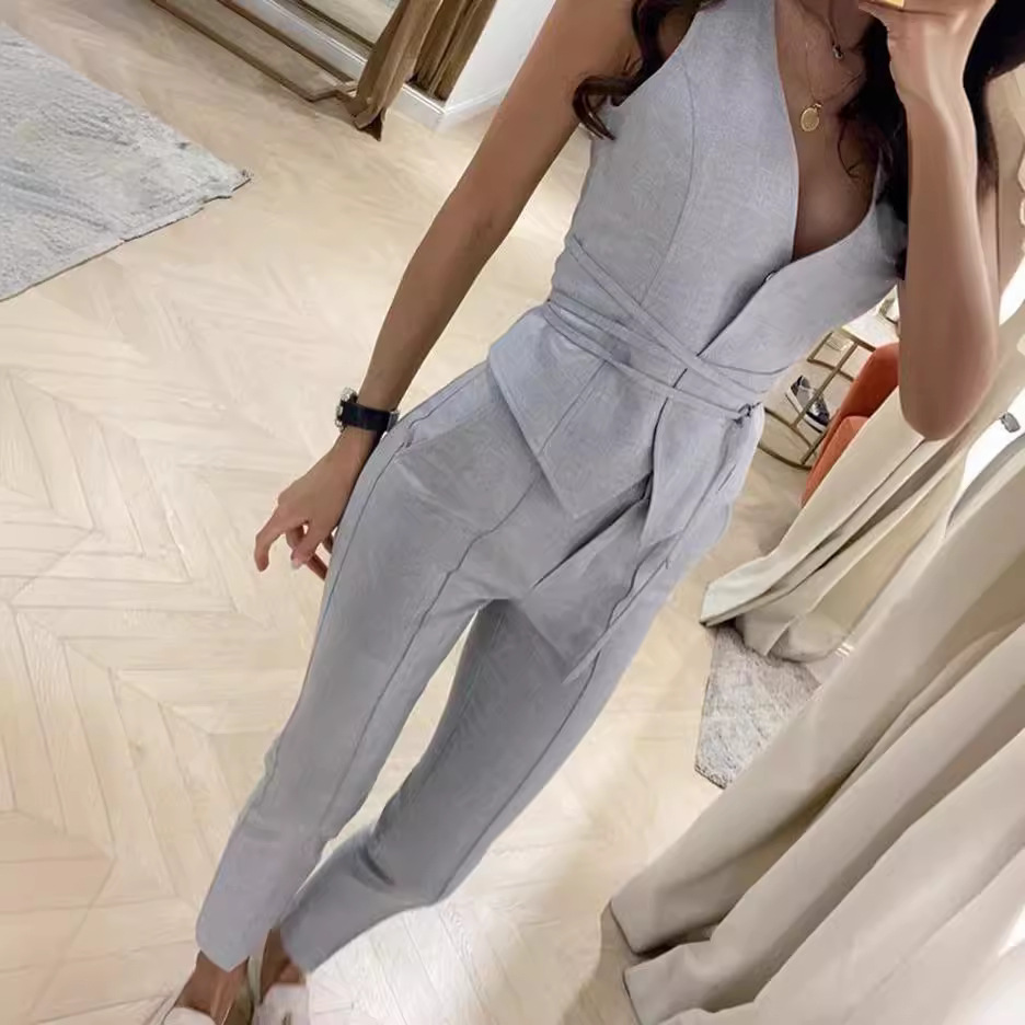 | nameOriginal | Cross-border independent station Foreign trade 2023 Summer new suit elegant waist-tight sexy vest skinny pants two-piece set for women |