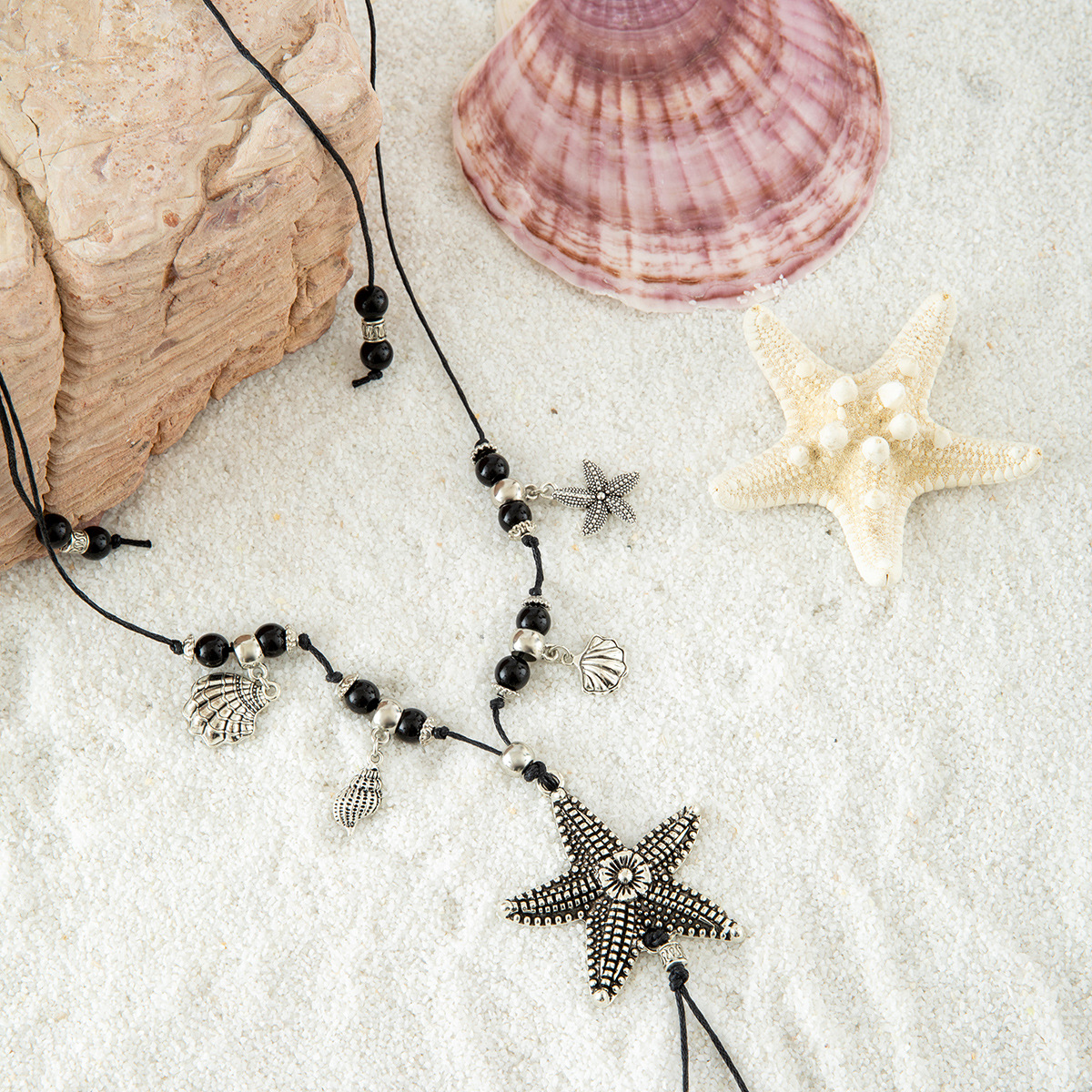 مجوهرات عبر الحدود البوهيمي نجم البحر حبل تو سلسلة الشاطئ الرياح الإسكالوب محارة مطرز القدم المدببة
