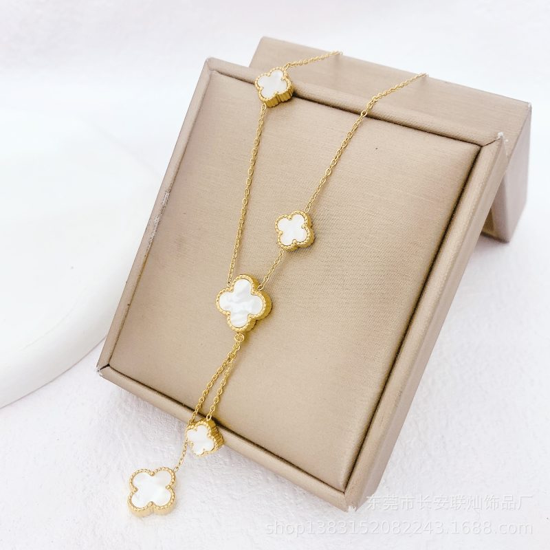 | nameOriginal | Cross-border jewelry French small fresh four-leaf clover size tassel necklace simple double-sided four-leaf flower in stock wholesale |