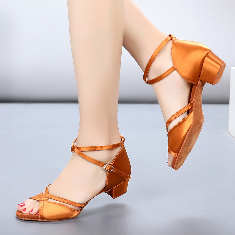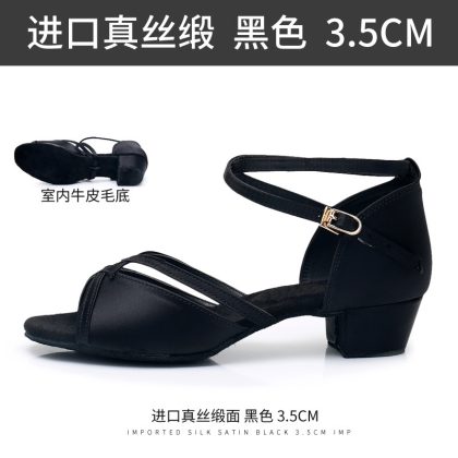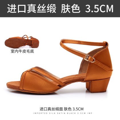 | nameOriginal | Cross-border Latin dance shoes for children and girls Women's soft bottom mid heel silk satin girls' dancing shoes one-piece delivery |