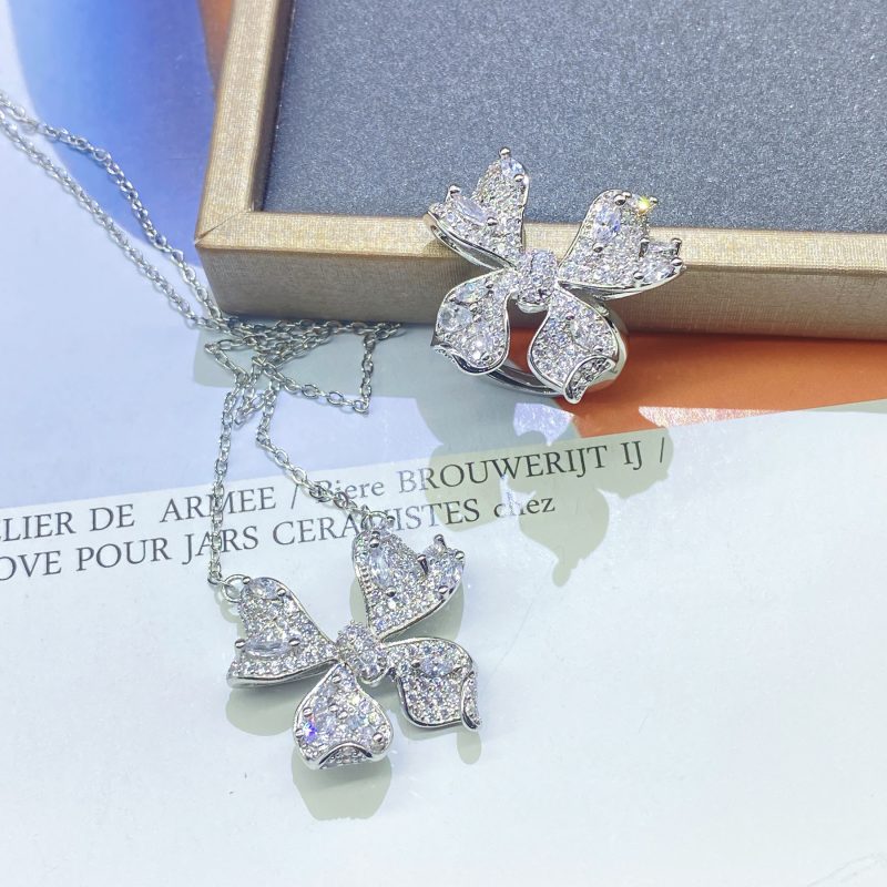 nameOriginal | Cross-border light luxury niche sweet girl mid-Ancient bow necklace clavicle chain Super fairy butterfly ring suit wholesale |