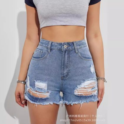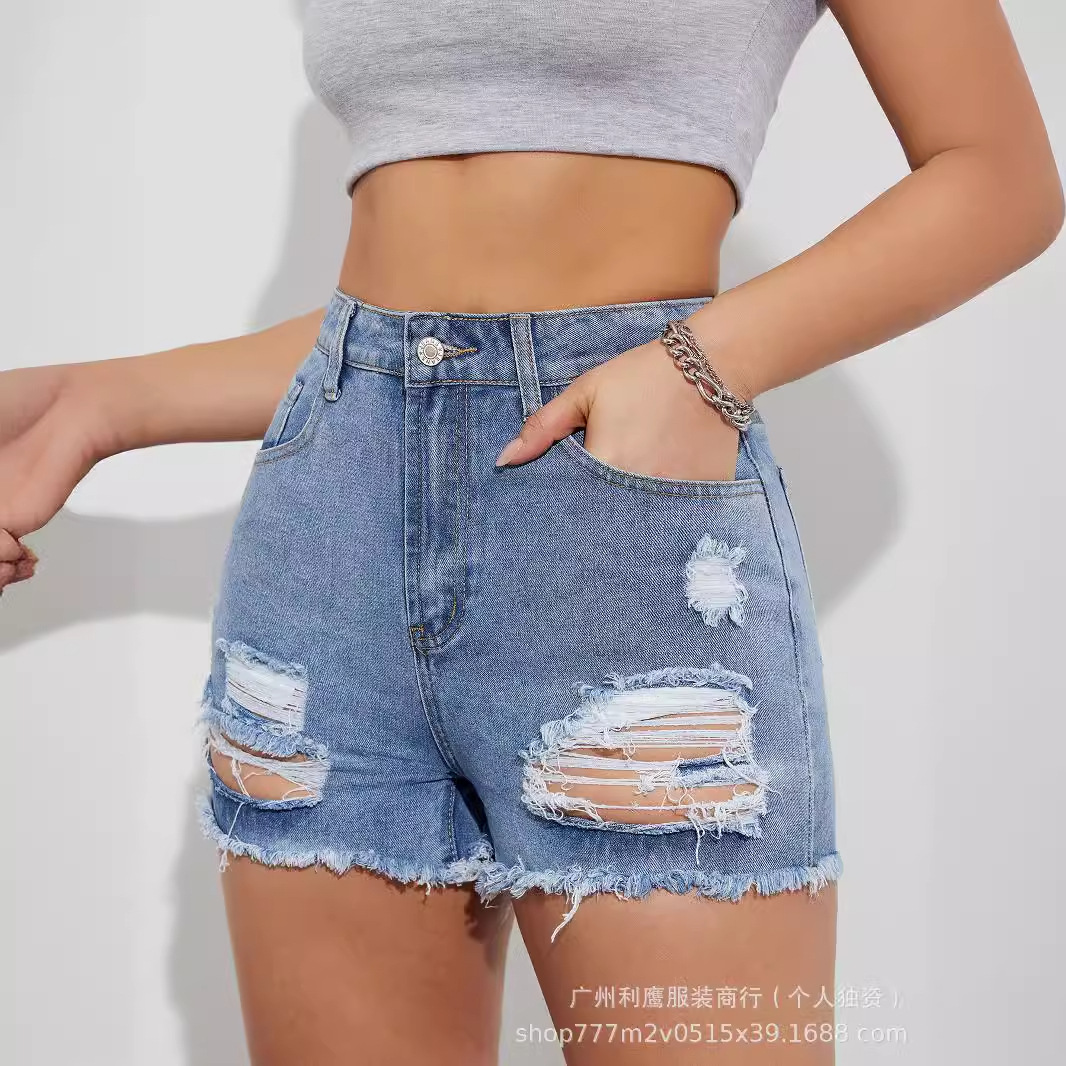| nameOriginal | Cross-border New Amazon wish in stock 2024 Summer New Washed Hole High Waist Embroidered Denim Shorts Women |