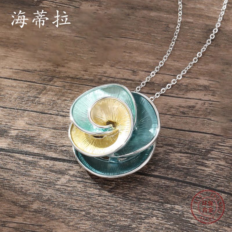 قلادة وردية هندسية زيتية ملونة جديدة عبر الحدود للربيع والصيف للسيدات الصغيرة الطازجة سلسلة عنق مصنوعة من خليط معدني