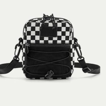 Cross-border New Couple Casual Bag Trendy Brand Fashion Mobile Phone Crossbody Bag Black and White Checkerboard Multi-function Shoulder Bag