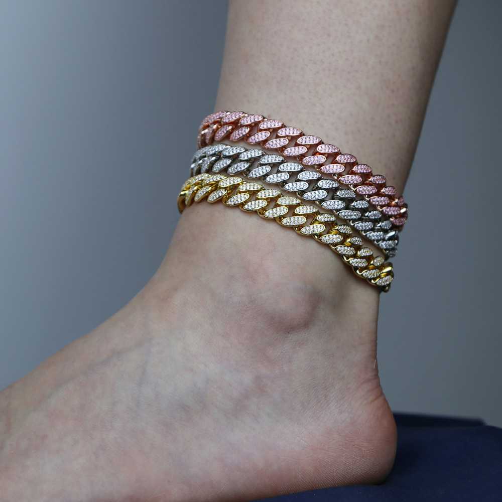 | nameOriginal | Cross-border new Cuban chain micro-inlaid zircon 12mm wide anklet ladies hip-hop jewelry factory direct spot |