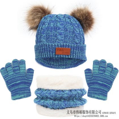 | nameOriginal | Cross-border new European and American children's hat scarf gloves three-piece set variegated autumn and winter new warm baby hat |