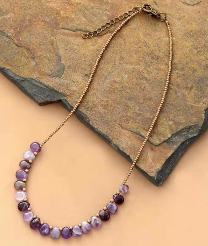 Cross border new ladies necklace amethyst beads short necklace Fashion necklace mother gift