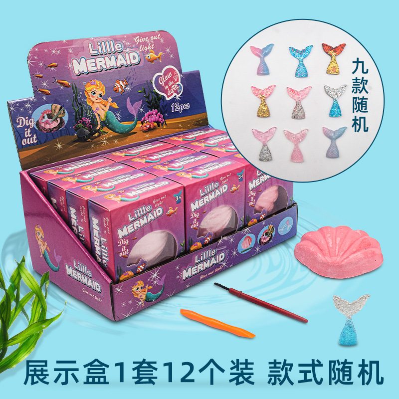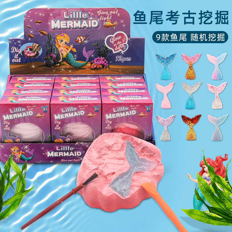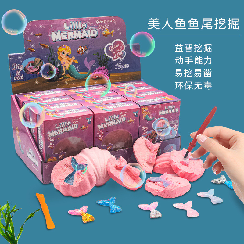 Cross-border New Mermaid Fishtail Archaeological Digging Mini Colorful Dinosaur Gem Children's Handmade Treasure Hunt Toy