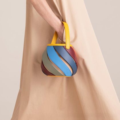 Cross-border new niche design new rainbow contrast color stitching geometric bucket bag shoulder crossbody cylinder handbag