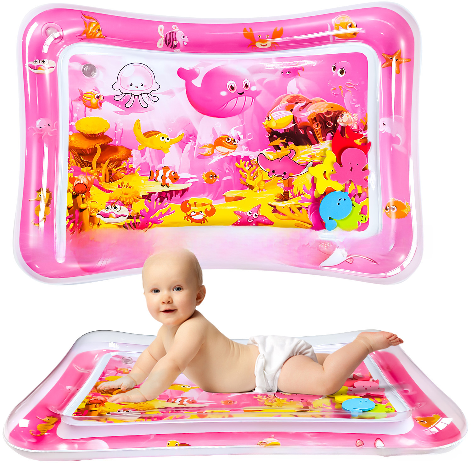 Cross-border New Pink Inflatable Pat Water Mat Baby Ice Mat Toys PVC Inflatable Ocean Water Mat Pat Mat