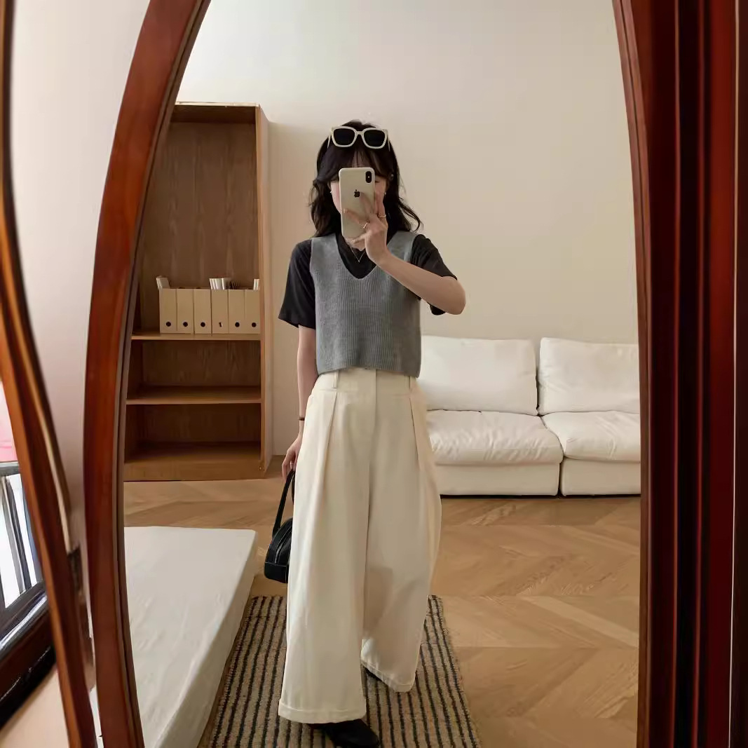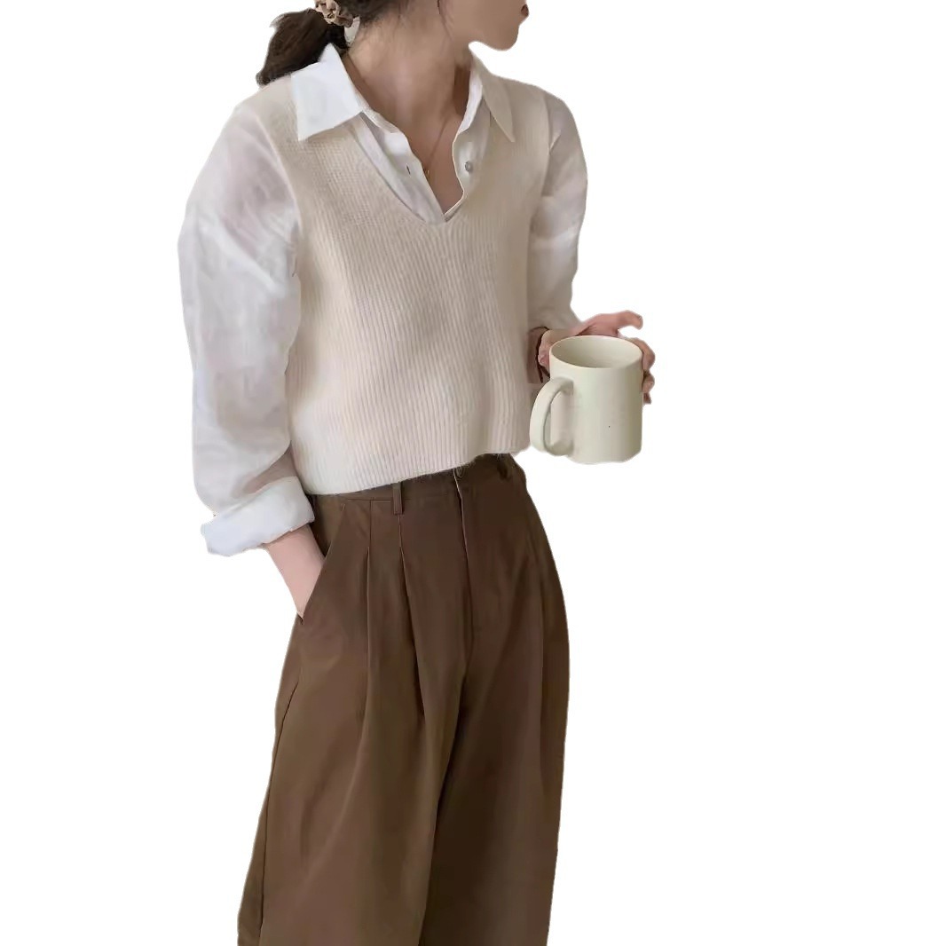 | nameOriginal | Cross-border New Simple Solid Color Small Double V-neck Knitted Vest Women's Short Stacked Knitted Vest Top |