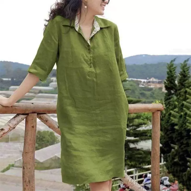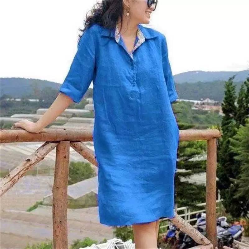 | nameOriginal | Cross-border new solid color casual loose dress |