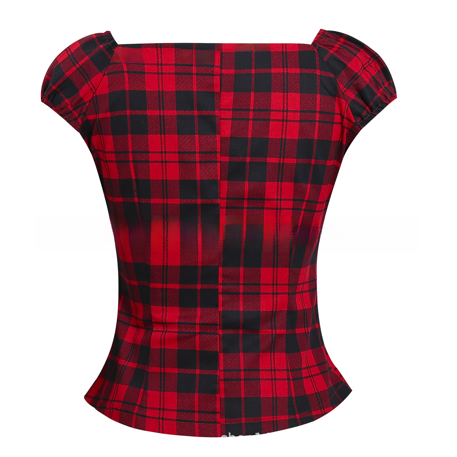 | nameOriginal | Cross-border original retro style classic plaid pleated button doll sleeve cotton top European and American women's clothing factory in stock |