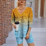 | nameOriginal | Cross-border Printed Two-piece suit Women's Two-piece V-neck Long-sleeved T-shirt Shorts suit Top Sets for Multiple Occasions |