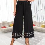 بيع سريع عبر الحدود من Amazon Ins Style Fashion مناسب تمامًا للتنحيف بلون سادة مجوف غير رسمي واسع الساق للنساء