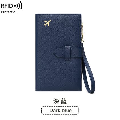 Cross-border RFID anti-theft brush women's wallet Pu cross pattern long wallet multi-card ID bag New passport holder