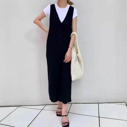 | nameOriginal | Cross-border Source 2024 Summer New Lotte Loose Slim Japanese V-neck Overalls Sleeveless Pocket Jumpsuit |