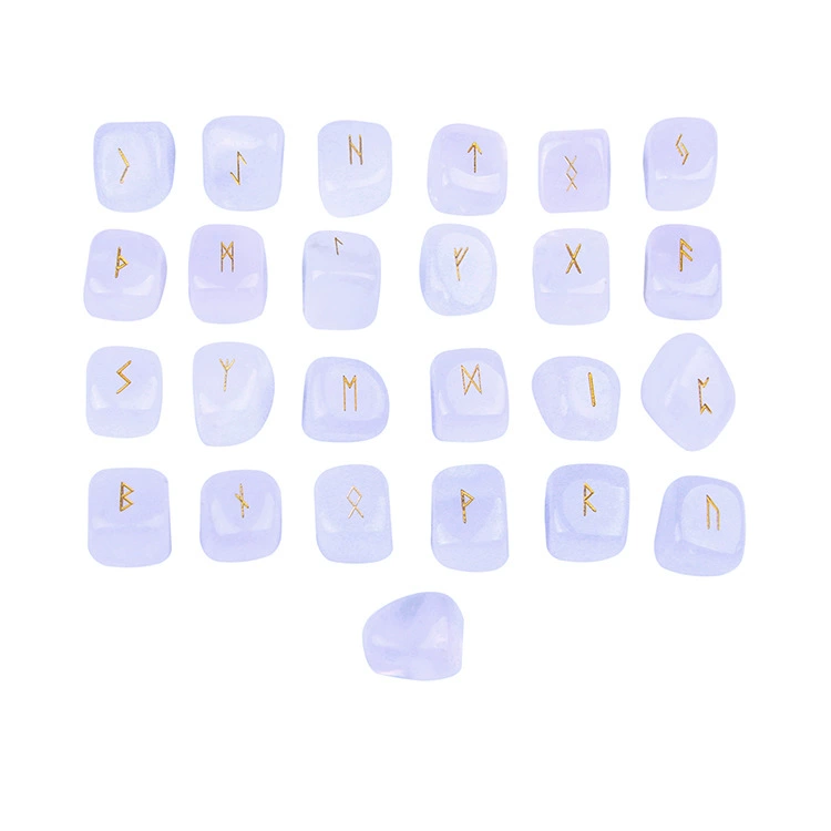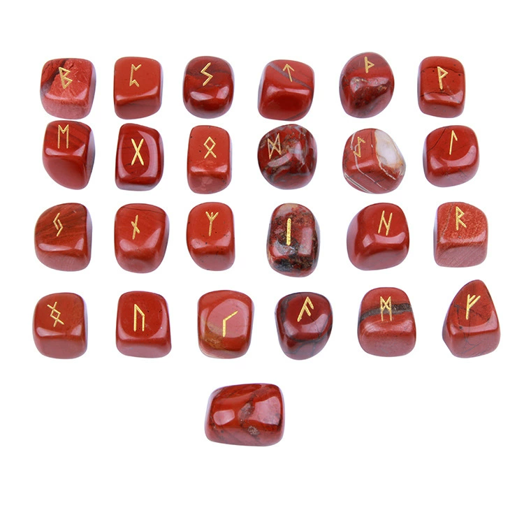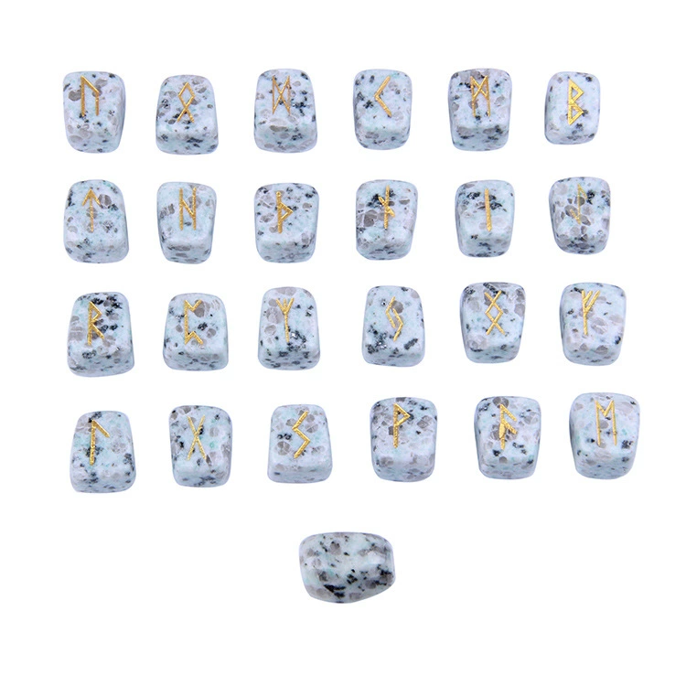 توريد بقعة عبر الحدود من الأحجار الطبيعية شبه الكريمة حجر رون كريستالي مع رموز رونية منقوشة 25 حلية